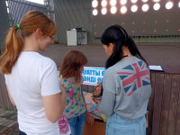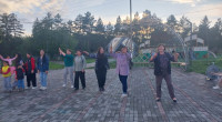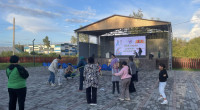 Жылыту үшін жүргізуші қарапайым би қимылдары бар көңілді бейнені көрсетті және көп ұзамай бүкіл алаң уақытша ашық аспан астында би алаңына айналды. Осыдан кейін ашық ойындар — эстафеталар, ептілік пен жылдамдық байқаулары басталды, оған балалар да, ересектер де қуана қатысты. Әр тапсырма жүргізушінің мотивациялық түсініктемелерімен бірге жүрді: "Кім қозғалады – сол жасарады!", «Күлкі мен қозғалыс — ең жақсы дәрумен!»